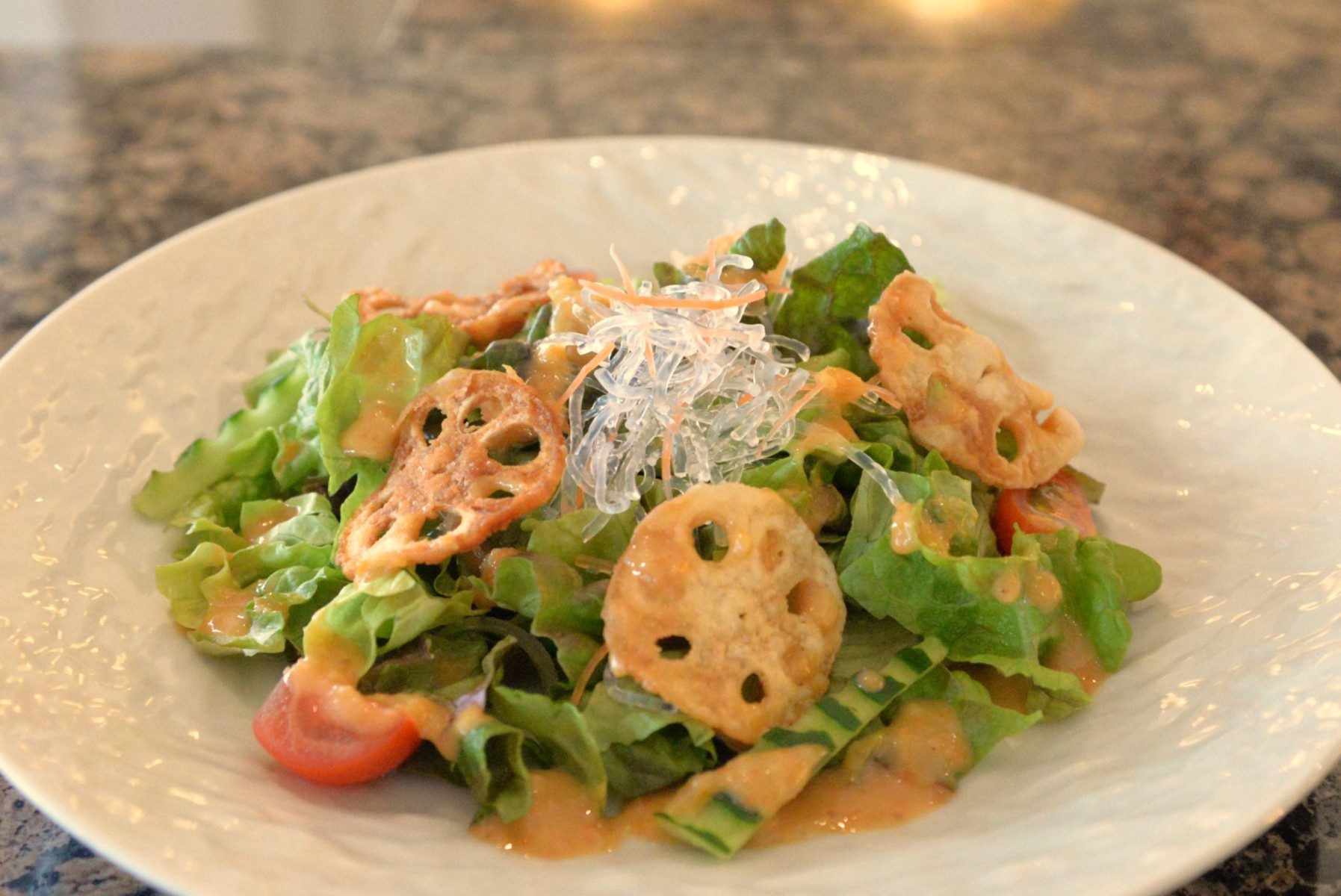 サラダ レンコンチップとグリーンサラダ