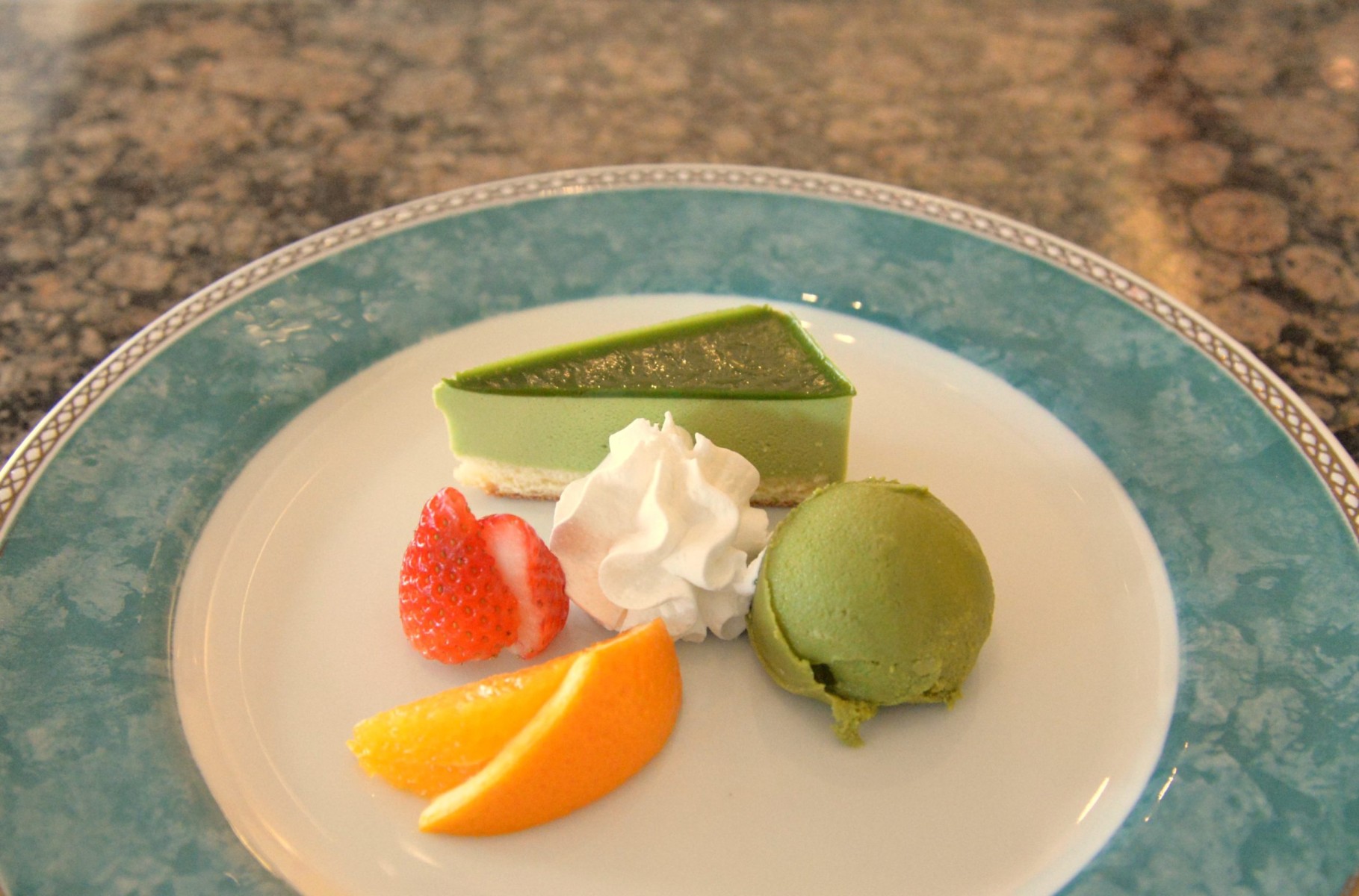 デザート 抹茶のムースと抹茶のマカロン