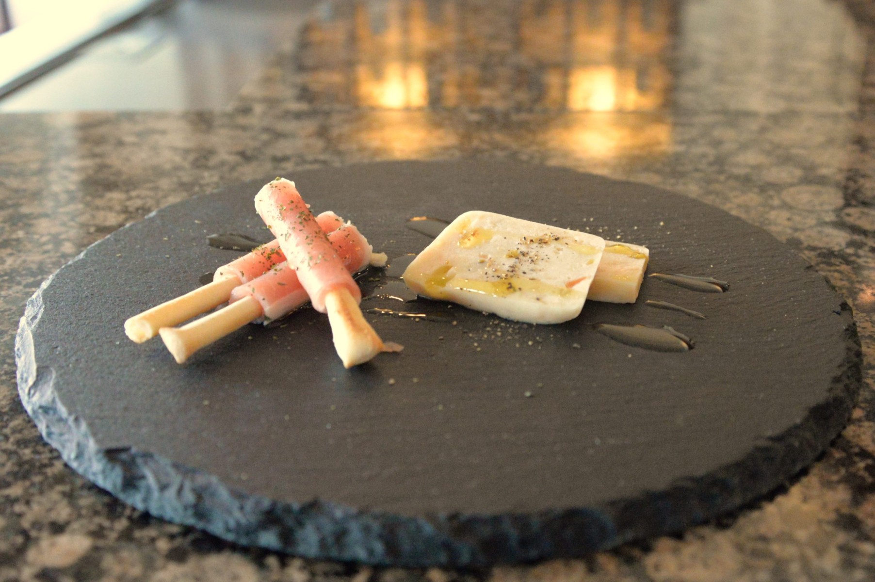 前菜 グリッシーニ生ハム巻とチーズテリーヌ